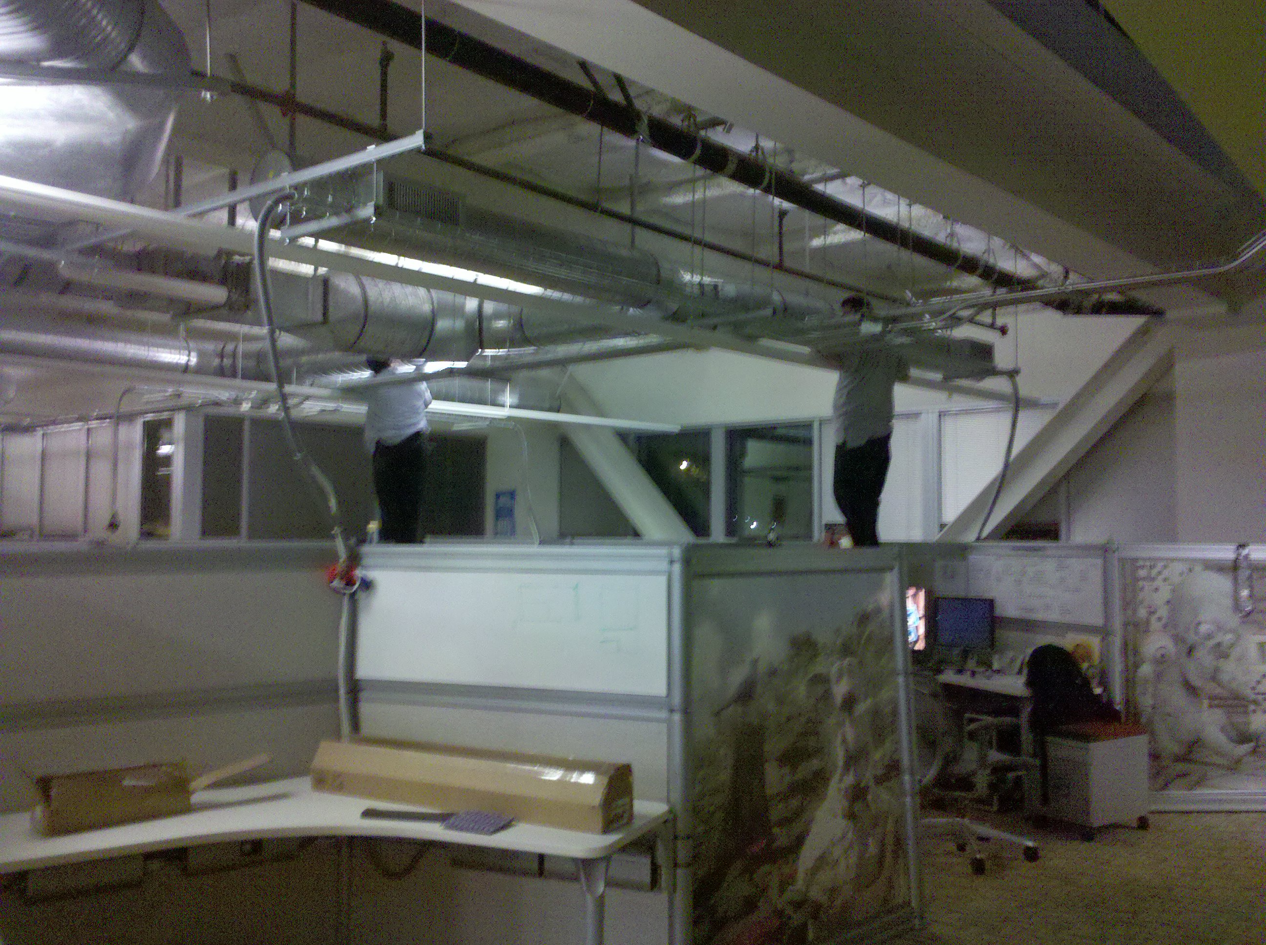 Replacing the lightbulbs at work is quite an operation.